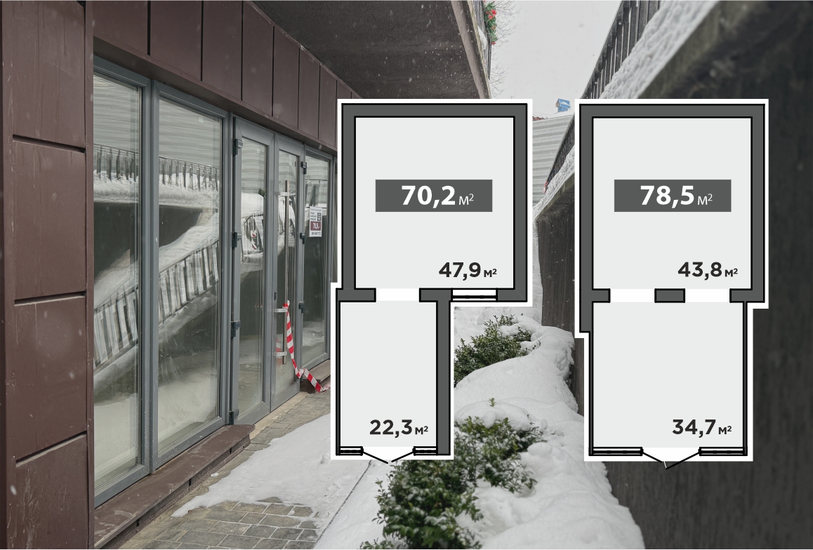 Площа – 70,2 м² та 78,5 м². Приміщення розташовані в активній комерційній лінії району, де бізнес уже став частиною повсякденного життя мешканців.