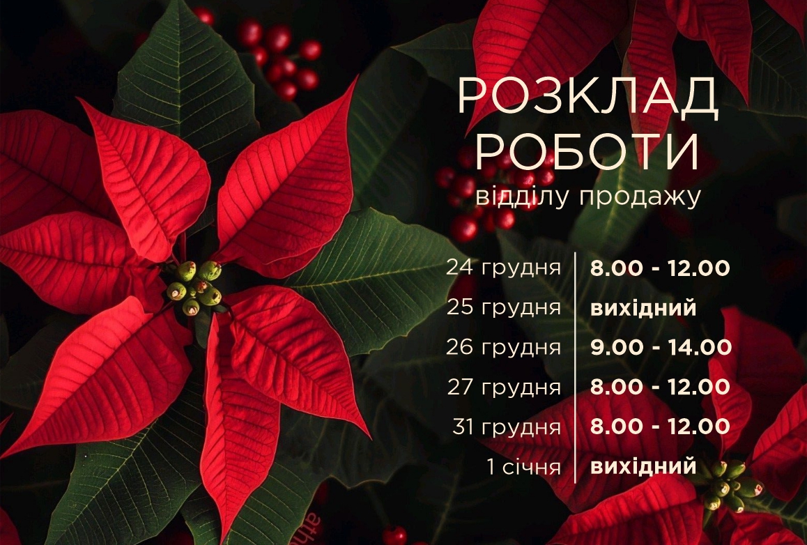 У святкові різдвяні та новорічні дні відділ продажу будівельної компанії “Спілка забудівників” працює за зміненим графіком.
