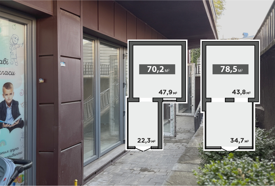 Комерція, що працює з першого дня. У першій черзі житлового району “Княгинин” доступні два готові до ремонту комерційні приміщення площею 70,2 м² та 78,5 м².