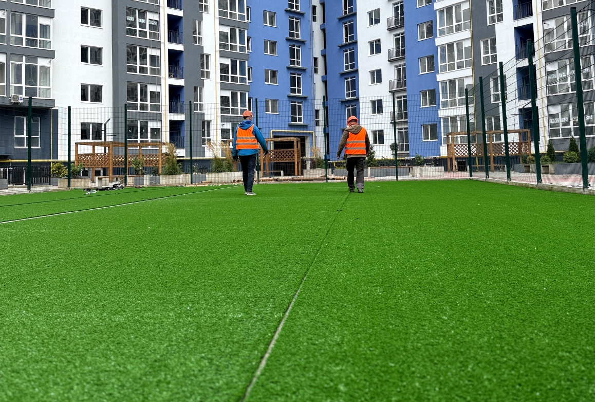 У найближчих планах – засипка покриття кварцовим піском і гумовою крихтою, встановлення футбольних воріт, нанесення розмітки поля, а також – монтаж освітлення.