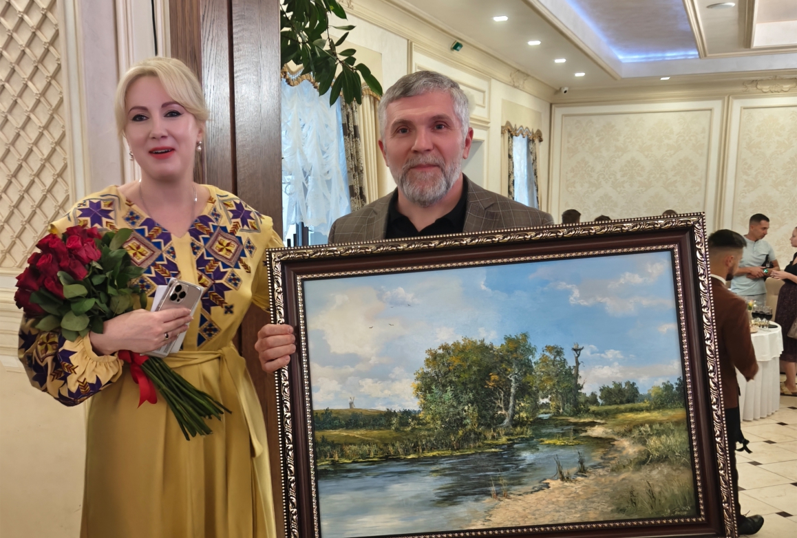 Нашу компанію представляв керівник управляючої компанії “Спілка Комфорт-ІФ” Андрій Гуйдаш. Він придбав один із лотів – картину Заслуженого художника України Юрія Пацана “На околиці села”.